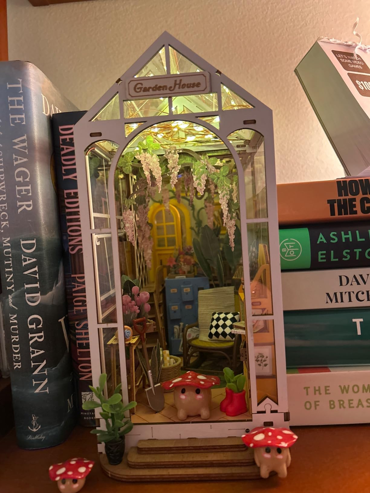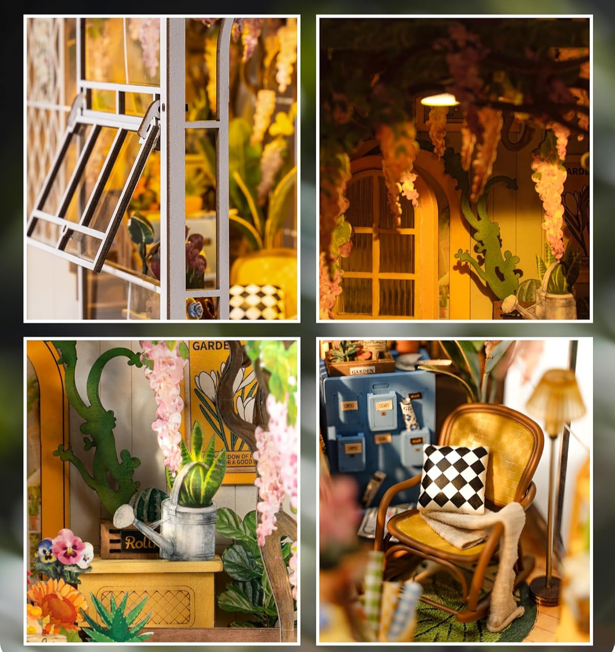 More than a decor piece, this book nook invites you into a mindful journey. With detailed parts, a mini garden, tools, veggies, and books, every assembly step offers the joy of creating something beautiful. It's a fulfilling escape into a world of miniature charm.