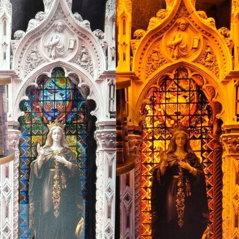 Once completed and powered, the LED flickers like lamplight in a secret room. Shadows dance across carved details, the spinning wheel of fortune turns gently, and each component appears alive. The effect? A miniature world that feels charged with narrative and intrigue.