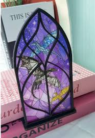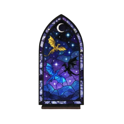 Designed like a little fantasy window, this piece combines a dragon silhouette, gothic style framing and bookish details into a single panel you can tuck beside your favorite editions. The acrylic center catches the light while the wooden frame keeps everything feeling warm and tactile, so even without a candle it works as a mini art piece on your shelf. Slide it into a book nook space, stand it in front of sprayed edge hardbacks or style it on a tray with your bookmarks and trinkets to create a dedicated dragon rider corner without any DIY build required.