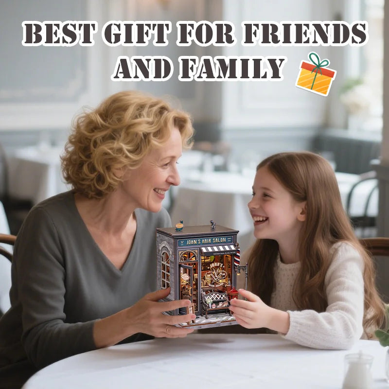 Slide pieces into place shelves, chairs, styling tools and then press the touch sensor. A warm LED glow floods the space, casting soft shadows and illuminating the textures you built. It’s more than a model; it’s a miniature time capsule, a pause in history built with your hands.