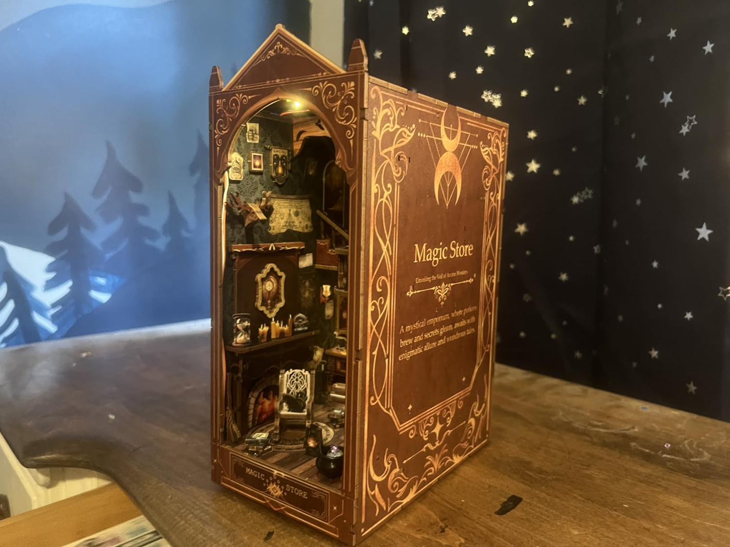 Our book nook kits are crafted from high-quality materials, including durable wood, resin, and detailed paper elements. Each kit is designed to ensure longevity and visual appeal, providing you with a delightful miniature scene that enhances your bookshelf.