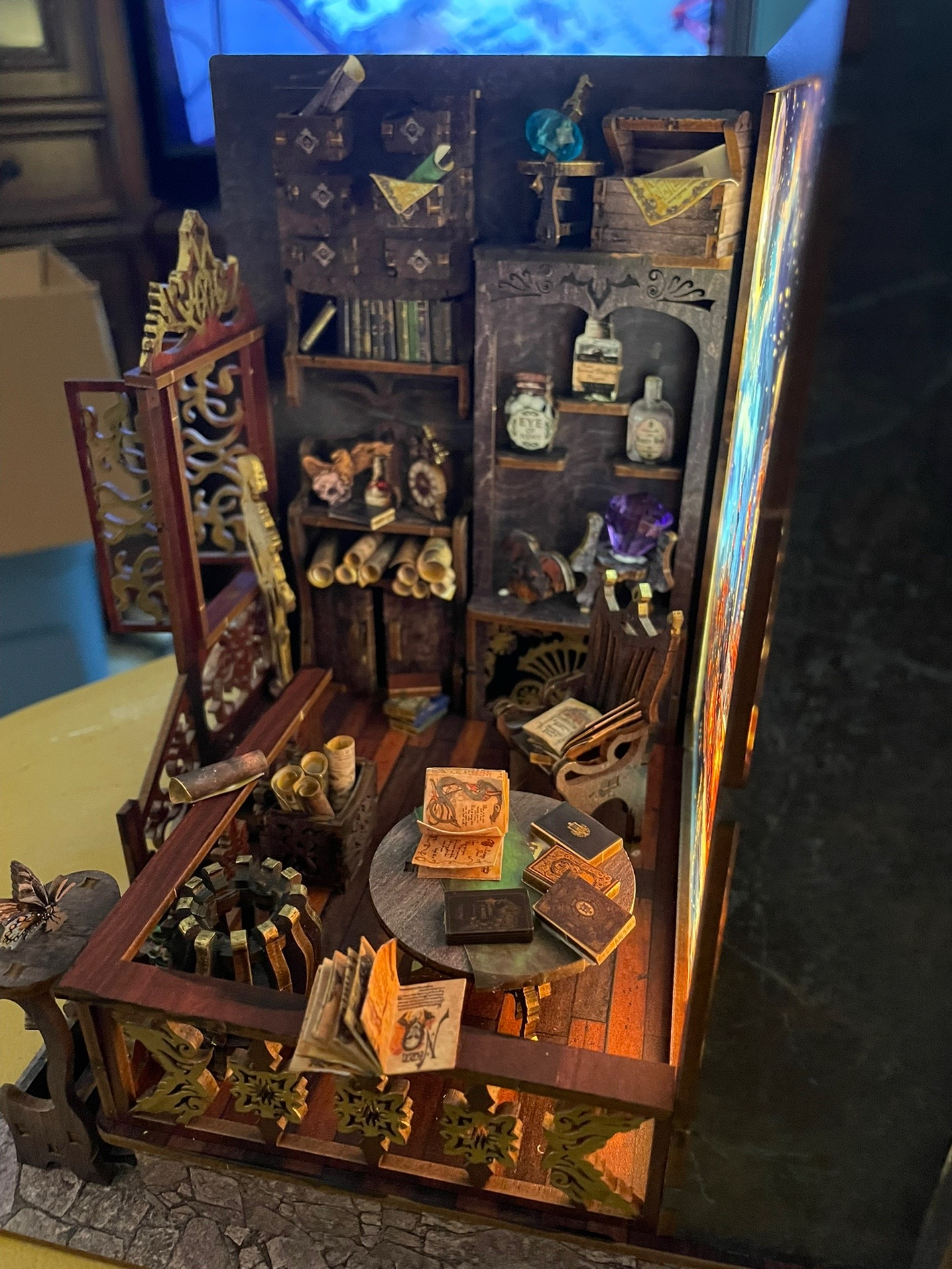 Our book nook kits are crafted from high-quality materials, including durable wood, resin, and detailed paper elements. Each kit is designed to ensure longevity and visual appeal, providing you with a delightful miniature scene that enhances your bookshelf.