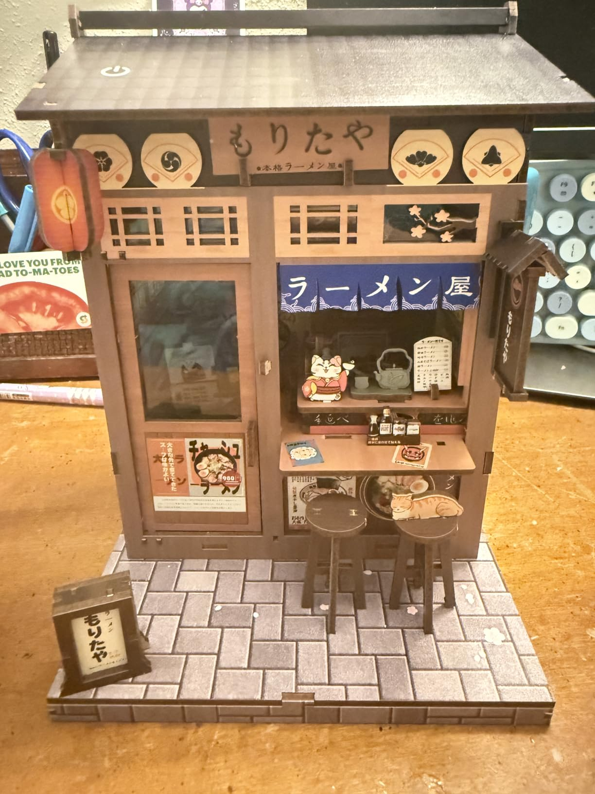 Step into the cozy glow of a Japanese ramen shop tucked away in a quiet alley. The steam curling from the pots, the sleepy cat by the counter, and the intimate wooden decor capture the soul of late-night Tokyo. This book nook is a gentle blend of storytelling and scenery.