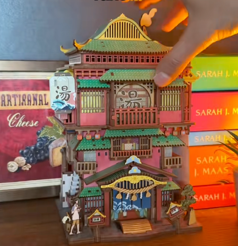 With the motion-sensor rooftop, a simple wave brings the lanterns to life, as if beckoning guests to the bathhouse. Light spills softly through the windows and reflects off tiny details, making this miniature not just a model, but a scene alive with atmosphere.