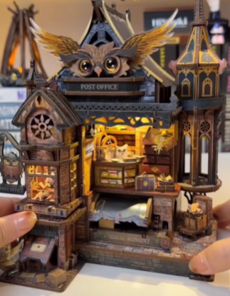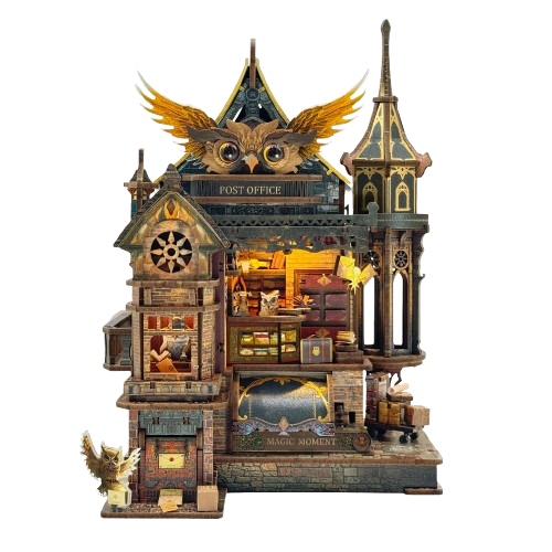 This miniature is built like a scene from a fantasy novel. At the front desk, you will see letters, luggage, antique storage, and detailed props that make the space feel like a real working office. The design leans into an old world, mysterious vibe, with a striking interior arrangement and an owl centered narrative that invites you to imagine midnight deliveries and secret messages being stamped by candlelight. Every angle is layered with little discoveries, so it becomes the kind of piece you keep looking at long after the build is done.