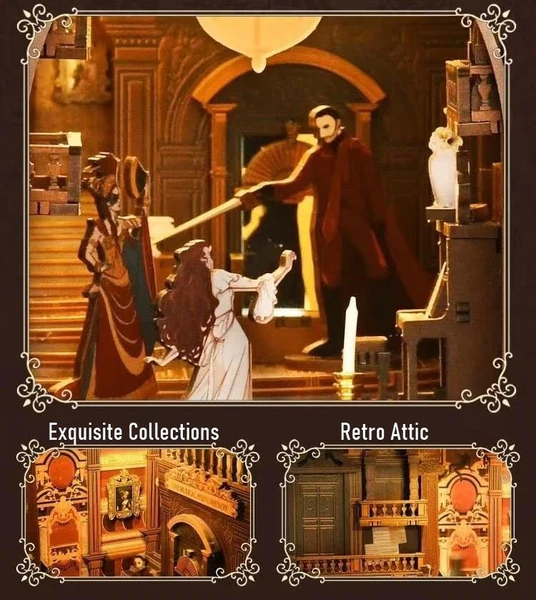 Once complete and illuminated via touch-switch or LED, the miniature scene glows like the theatre at dusk—chandelier lit, velvet curtains drawn, shadows dancing on wood and stone. The result is not just décor, but an experience of atmosphere and narrative.