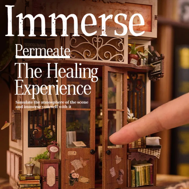 Rediscover the beauty of literature and art in miniature. With the Art Book Store kit, you’ll build a cozy yet refined shelf-insert scene: rich wood shelves lined with classic tomes, art prints adorning the walls, a reading lamp casting warm glow, and a world of craft converging in one elegant diorama. As you assemble each piece, you create more than décor— you create a sanctuary for the mind and eyes.