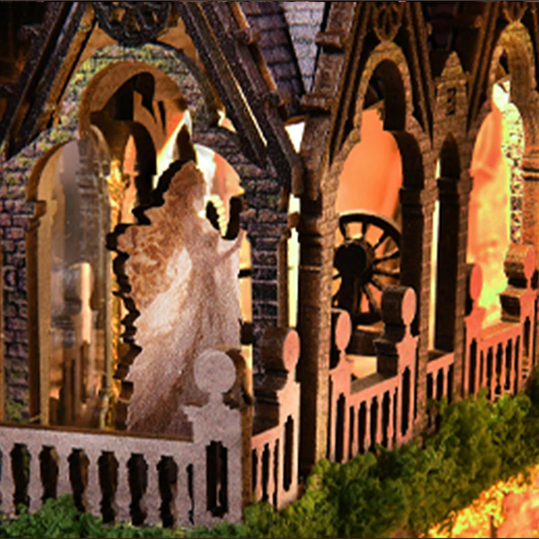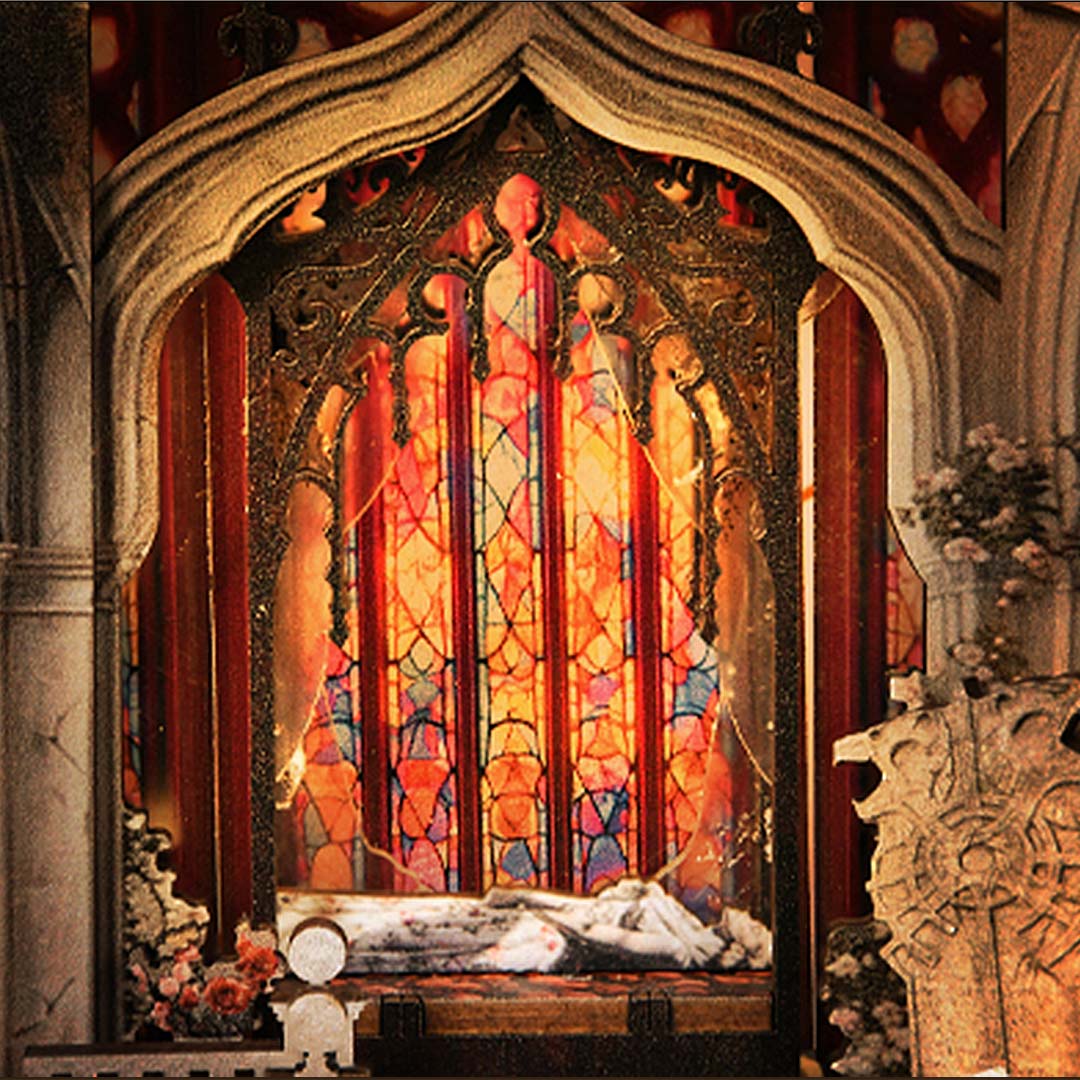 Tap the sensor, and the LED breathes life into stone, glass, and shadow. The glow shifts across carved columns, flickers through the rose-laced windows, and highlights the princess in her slumber. It’s a scene suspended in myth—where darkness meets the first promise of dawn.