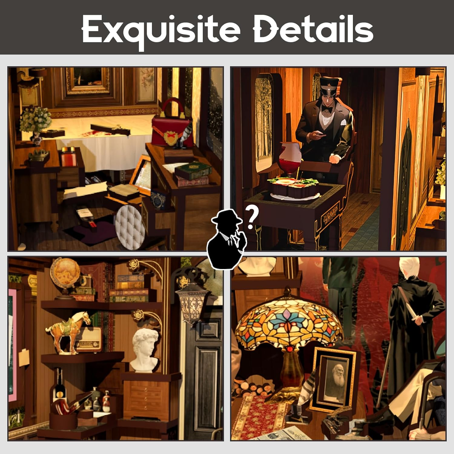 With 338 precision-cut pieces, this kit provides a rewarding challenge for crafters. From fitting sliding doors to setting up lighting, each step feels like assembling a piece of the mystery.