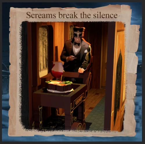 Step into a bygone era of rail travel, mystery, and elegance. The scene is rich with vintage charm — plush seating, shadowed compartments, and hints of a deeper story waiting to unfold.